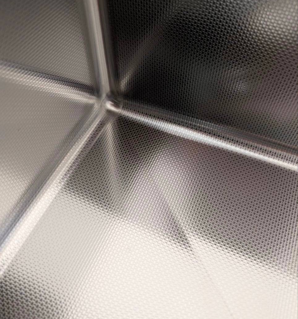 Рельеф Microdecor переосмысливает привычную нержавеющую сталь. Текстура мойки не собирает отпечатки пальцев и эффективно противостоит бытовым царапинам, что делает уход минимальным — достаточно протереть поверхность влажной тканью.