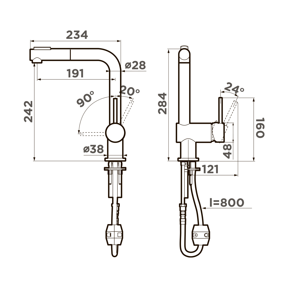 • Высота излива, мм 248