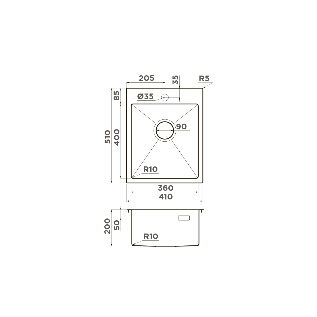 • Глубина чаши, мм 200