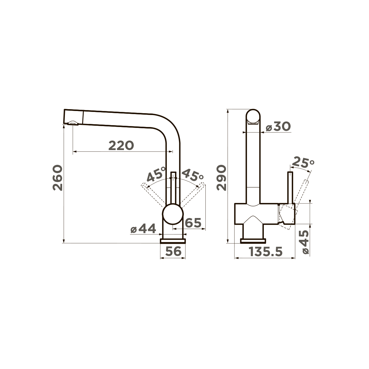 - Высота излива, мм 260